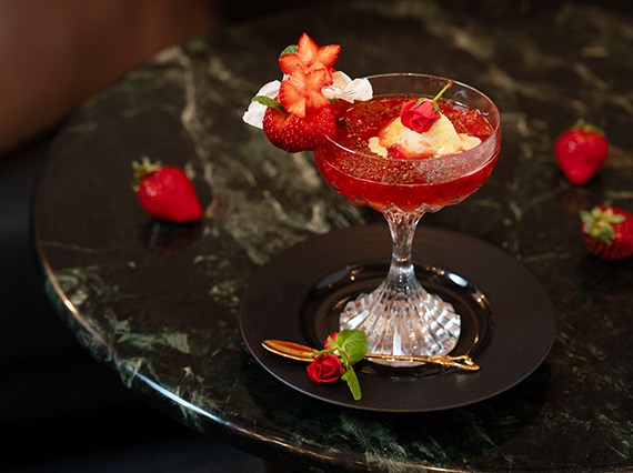 エグゼクティブバー「ブルーバー」では、不動の人気を誇るいちごを贅沢に使用したカクテル2種とモクテル1種をご用意いたします。